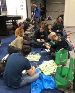Druk was het ook bij de stand waar de gadget gebouwd en uitgeprobeerd kon worden. Op een gegeven moment was er geen plaats meer aan de statafels en zaten er op de grond mensen in groepjes bij elkaar om even heerlijk te knutselen. En met resultaat, want ondanks een niet helemaal lekker lopende stuurinrichting, kan gesproken worden van een geslaagde gadget. Duidelijk dat veel van de bezoekers echte knutselaars zijn. De ware geest die hoort bij het vakgebied Electronics & Applications.