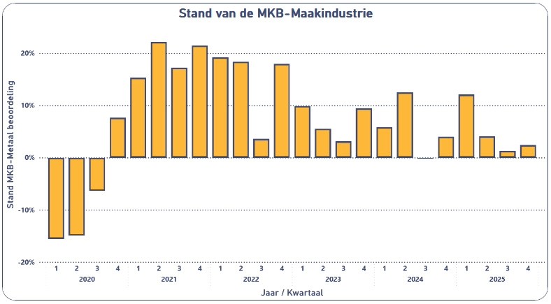 Daarnaast laten machinebouwers en defensiegerelateerde bedrijven een duidelijke groeiversnelling zien. De stijgende geopolitieke spanningen en investeringen in strategische autonomie vertalen zich direct in orderportefeuilles en capaciteitsuitbreiding binnen deze segmenten.