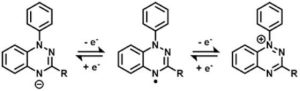 Daarom gebruikten Otten en zijn team een andere aanpak. Zij gingen opzoek naar en stabiel molecuul dat elektronen kan accepteren én doneren. Dat is dus aan beide kanten van de batterij te gebruiken. De meest geschikte verbinding was een Blatter radicaal, een bipolaire organische verbinding die in een redoxreactie elektronen kan doneren en accepteren. ‘En het molecuul dat we kozen was van zichzelf al stabiel’, zegt Otten.