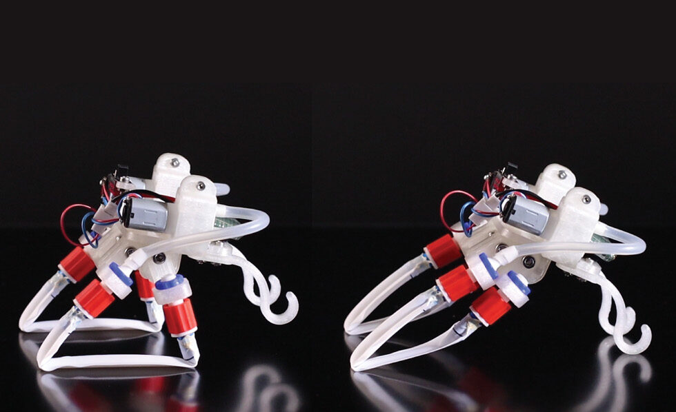 Een onderzoeksteam van AMOLF heeft een zachte robot ontwikkeld die loopt, huppelt en zwemt…