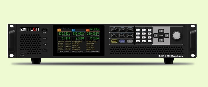 De Itech IT-EC7800 Series bestaat uit krachtige en veelzijdige programmeerbare AC/DC-voedingen. Dankzij de toepassing van SiC-technologie en een hoge vermogensdichtheid levert de serie tot 6 kVA in een 2U chassis en tot 15 kVA in een 3U chassis. Dit maakt de apparaten compact en efficiënt, zonder concessies te doen aan de prestaties.